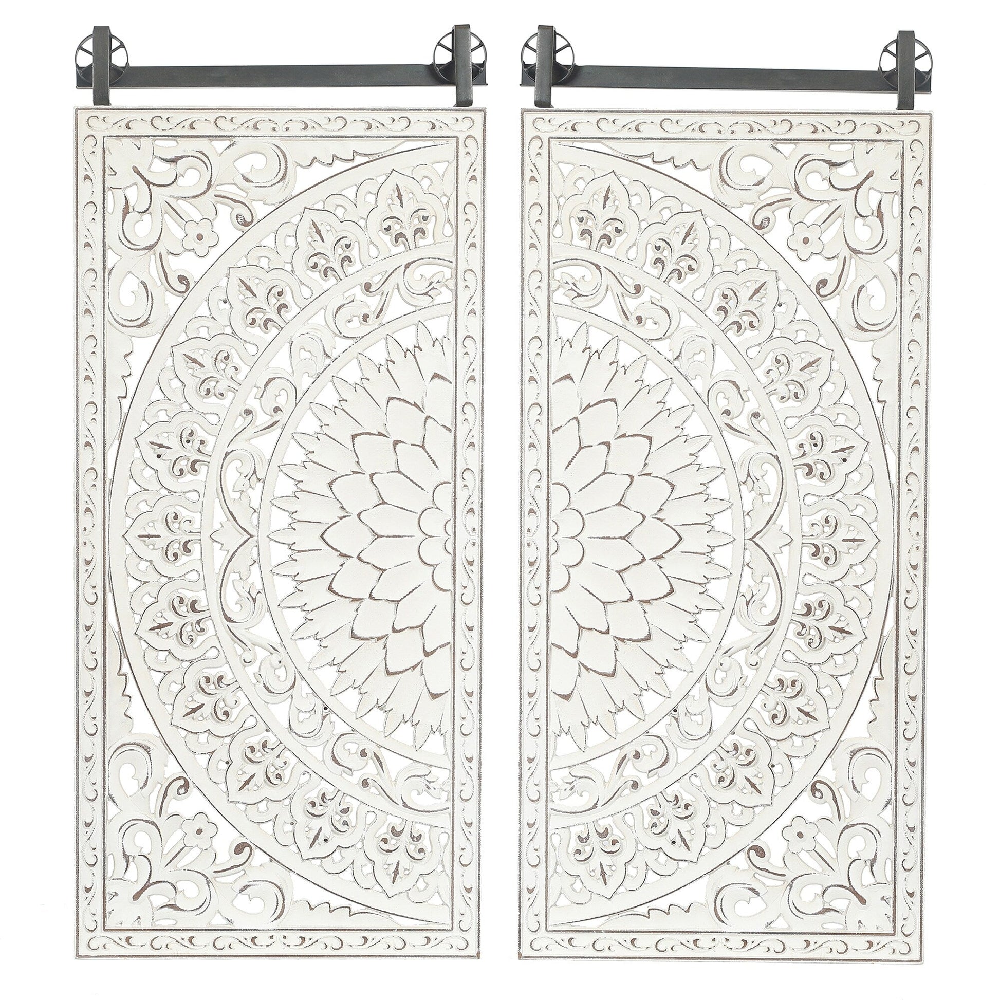 Distressed Ivory White Wood Flower Wall...
