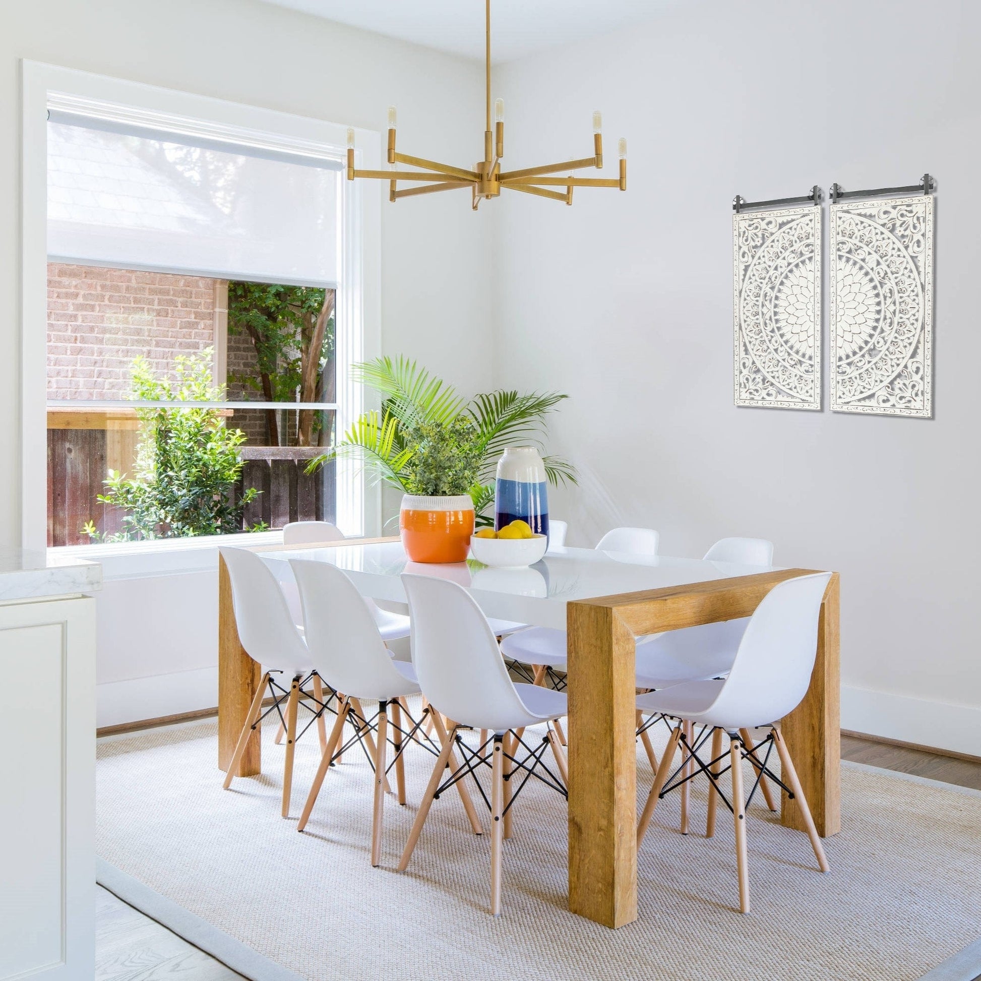 Distressed Ivory White Wood Flower Wall Art with...
