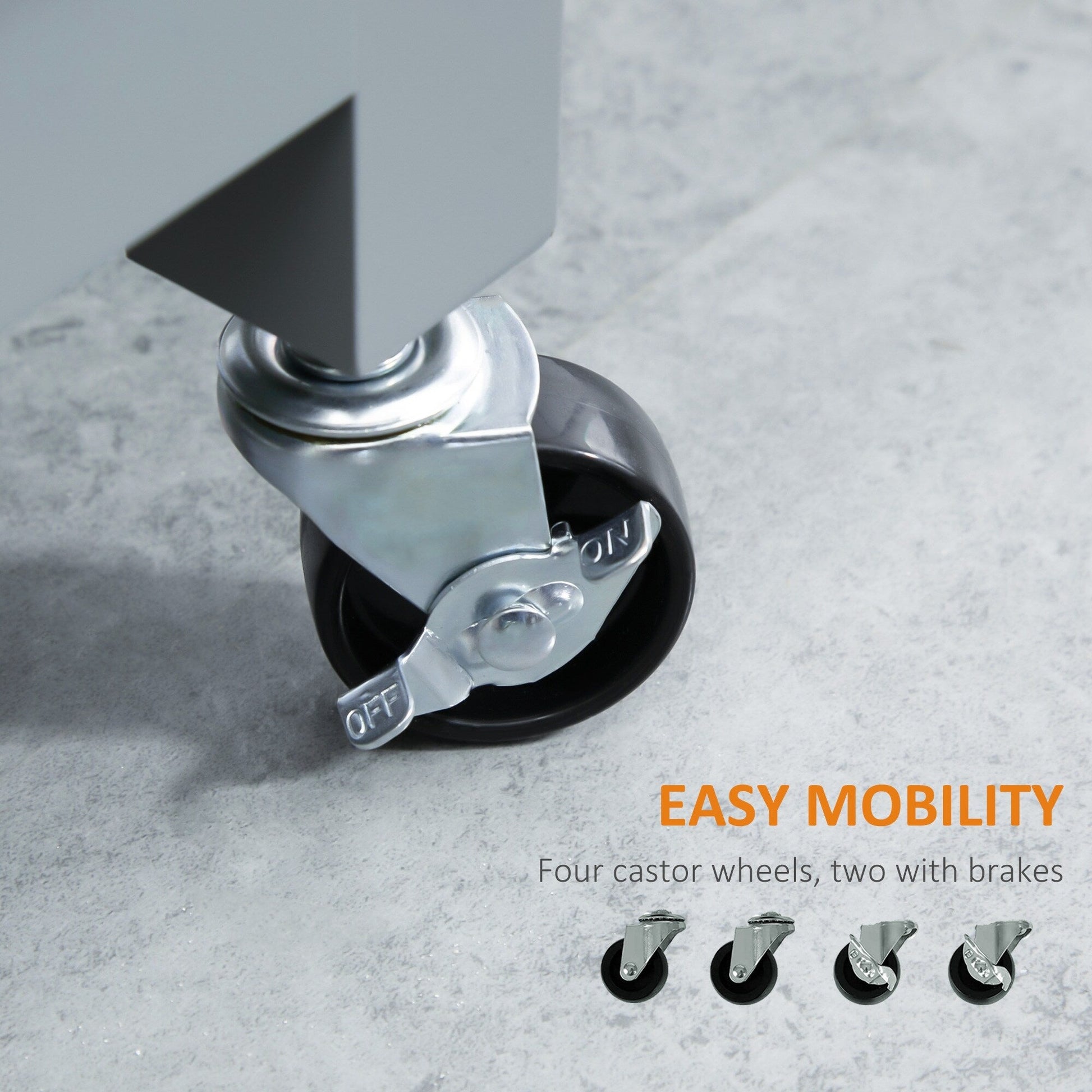• Comes with four wheels for unrestricted movement. 2 wheels have brakes