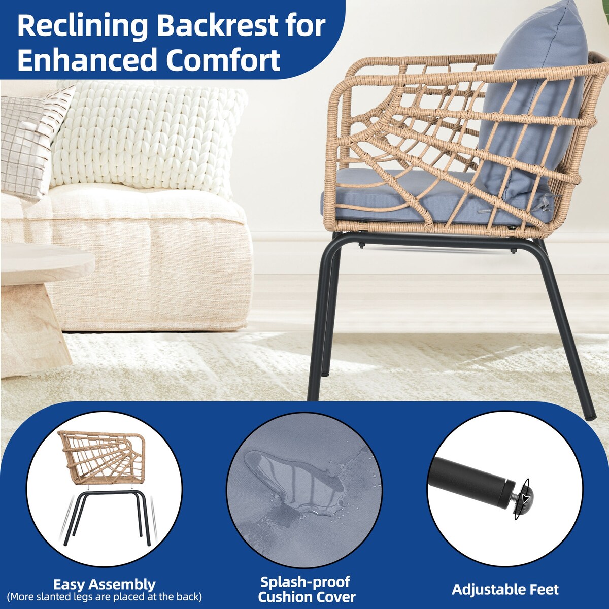 Moasis 3 Pieces Outdoor Wicker Furniture...