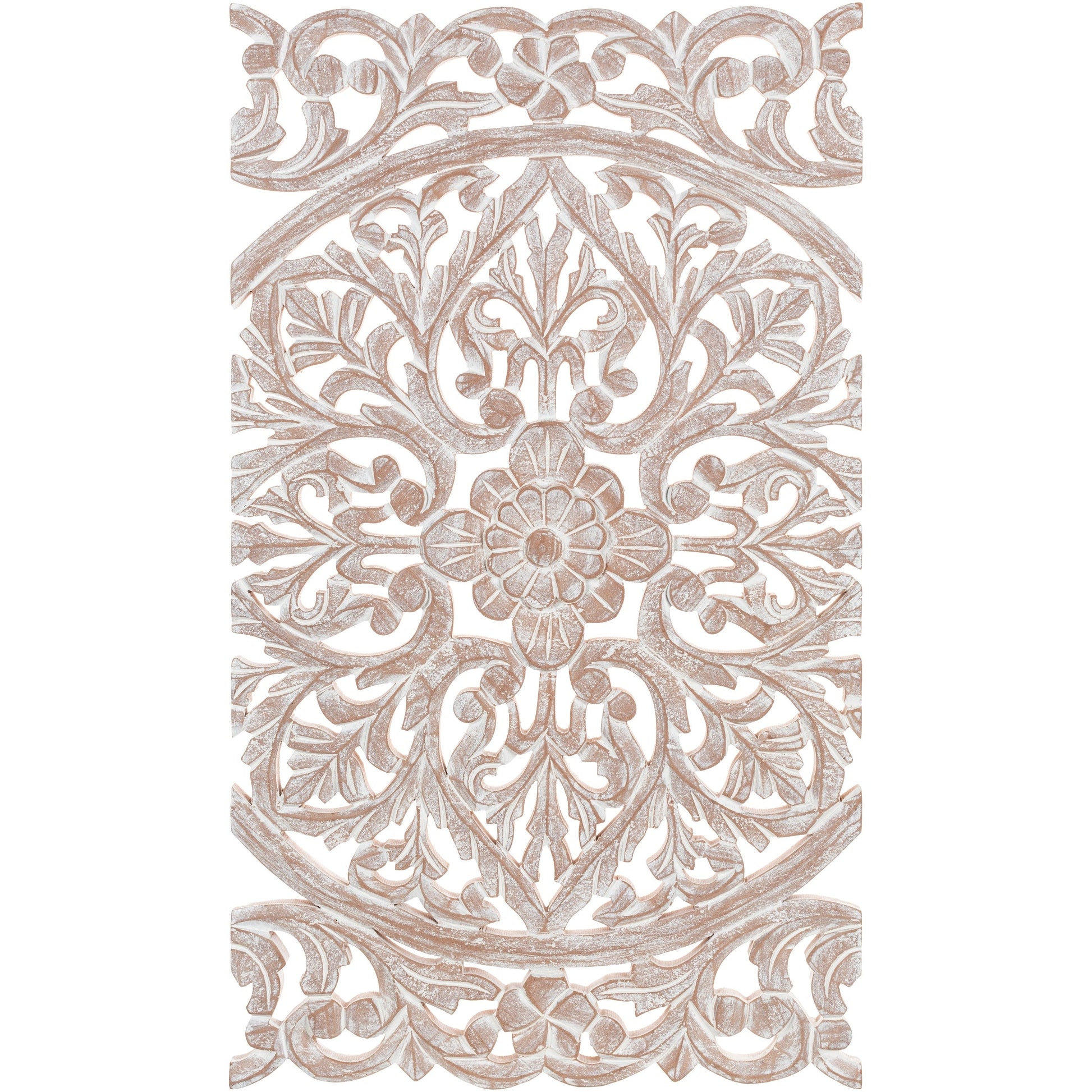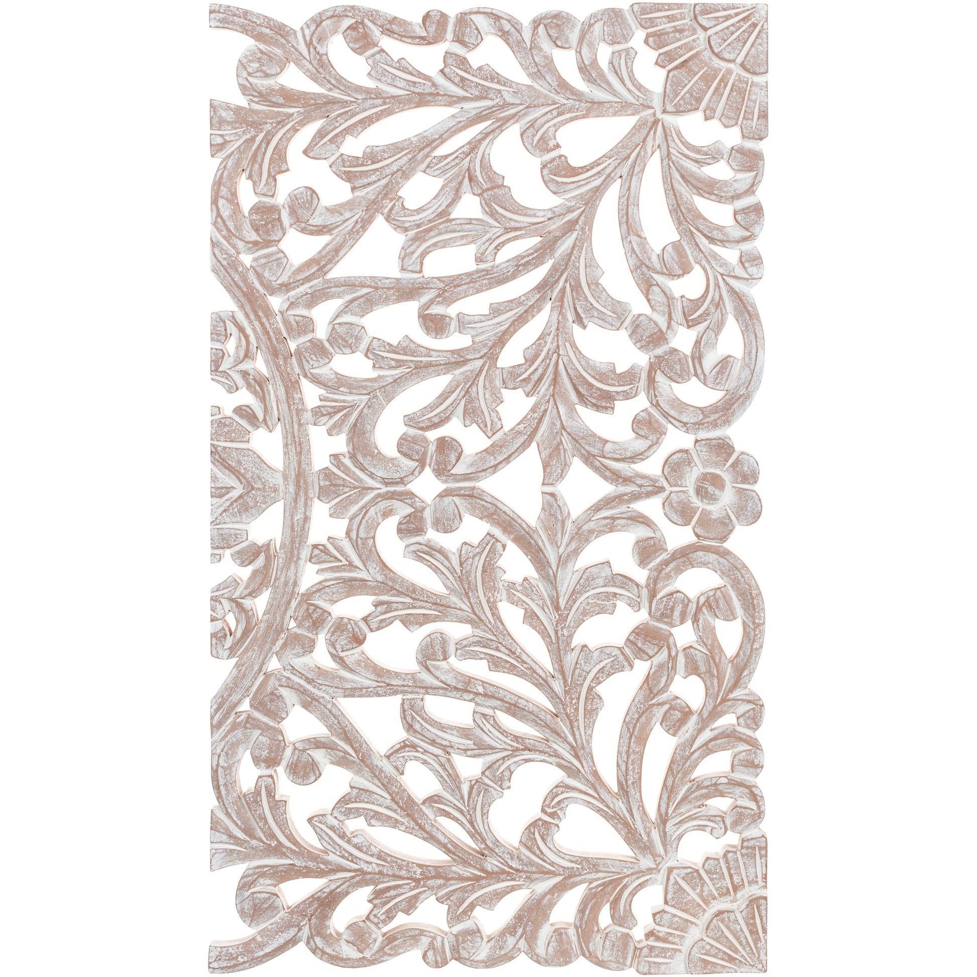 Norma Floral Hand Carved Natural Wooden 48x28-inch 3-Panel...