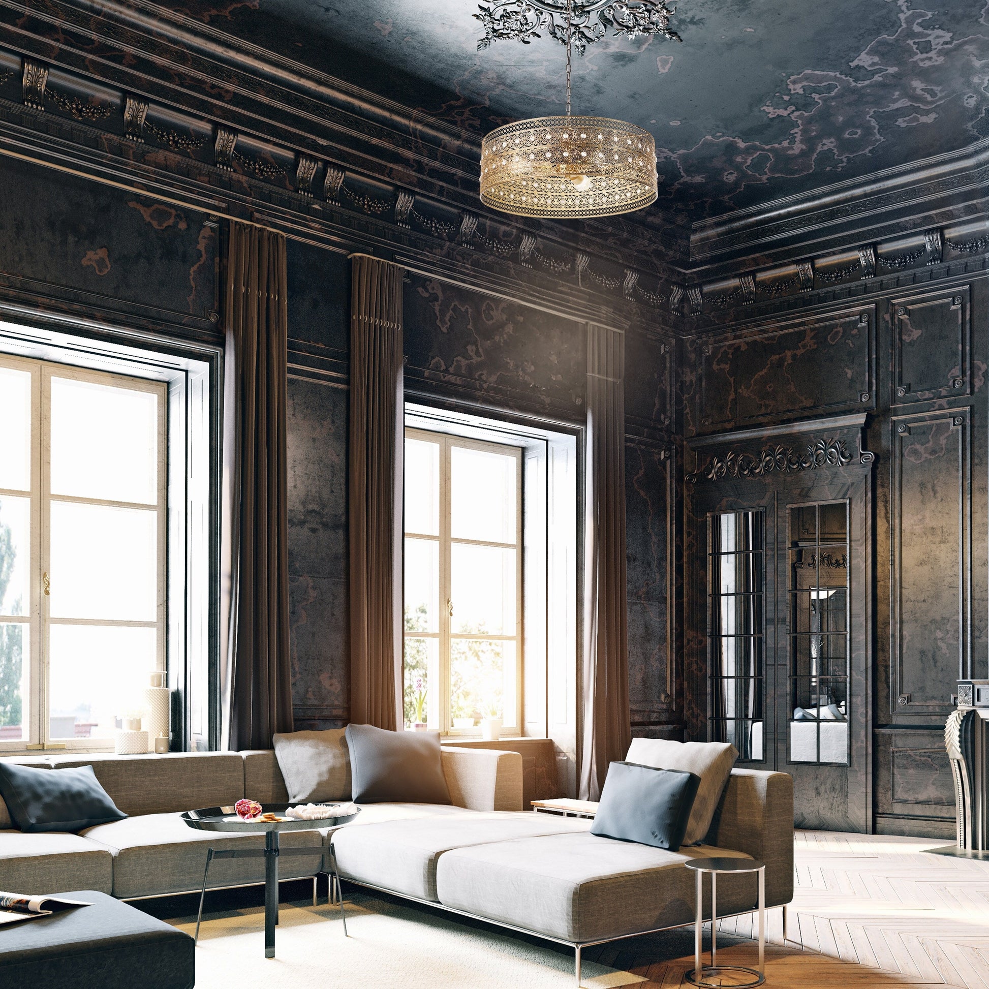 • Oversized at 23.5'W with feminine design for glam or traditional aesthetics