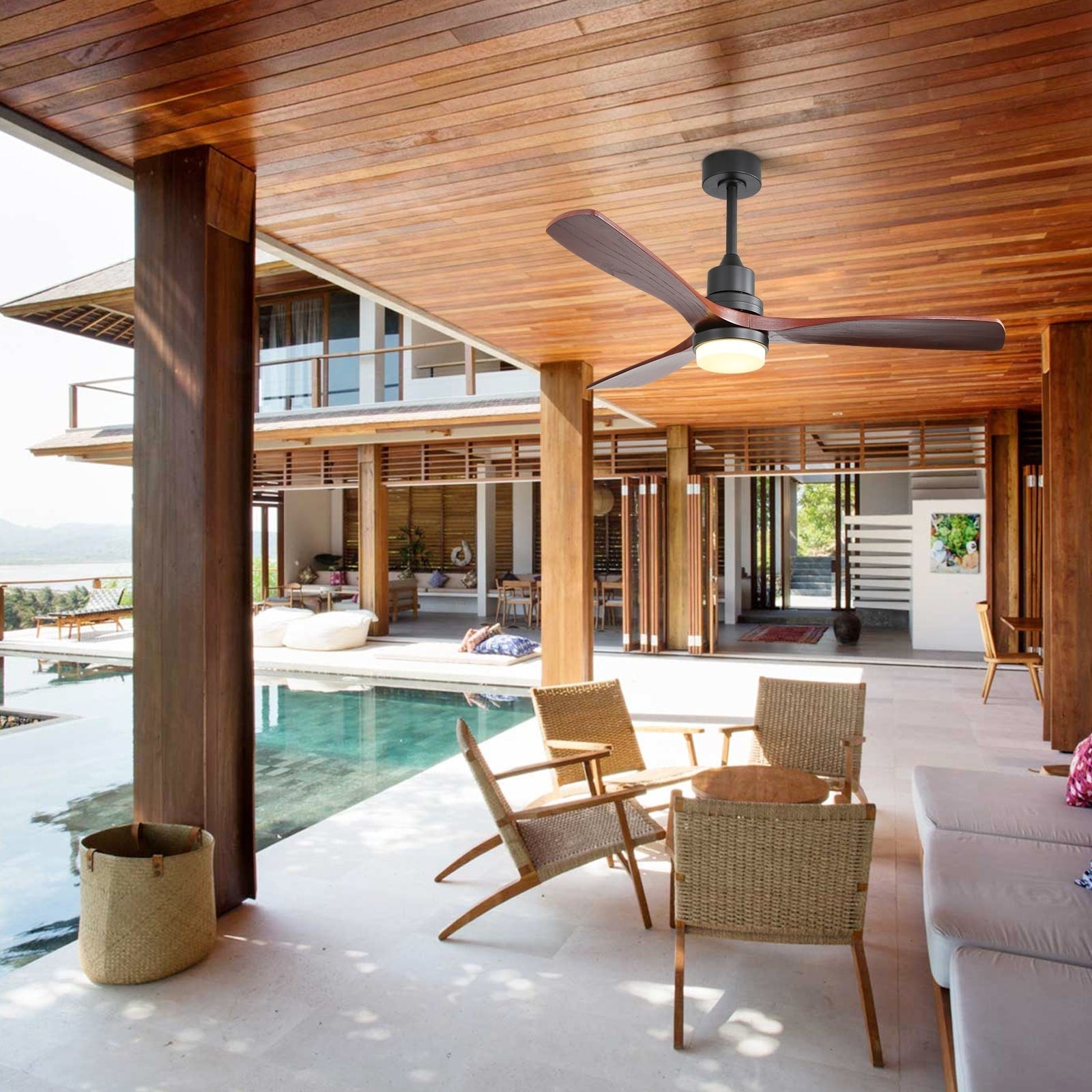 Experience a comfortable and quiet living environment with our Noiseless Walnut Wood Ceiling Fan Light with Remote Control. This elegant and modern ceiling fan with light features three solid walnut wood blades, delivering ultra-powerful wind in 6 different speeds. Its low speed setting is perfect for sleeping, while medium speed is ideal for daily use.