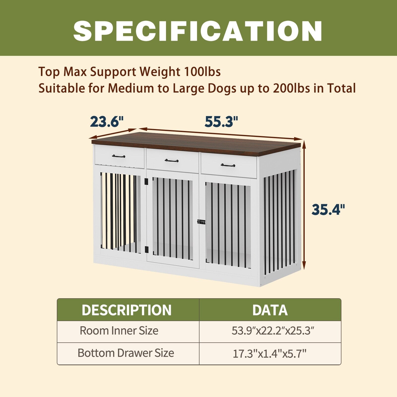 Stylish Wooden Dog Crate Furniture with Storage, 3...