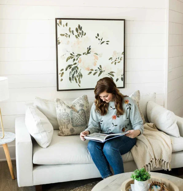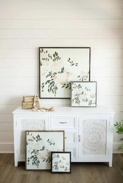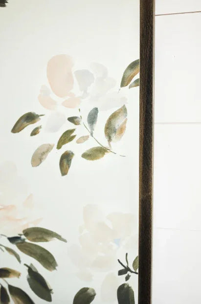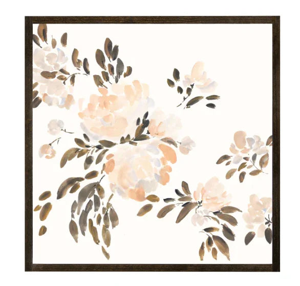 Cette œuvre murale est disponible avec un cadre teinté brun foncé. Peinte en exclusivité pour Joyfully Said par l'artiste Anee Shah, Take Up Space présente des nuances de crème, de blush, de gris et d'olive qui s'unissent pour créer une magnifique œuvre florale, légère et aérienne.
